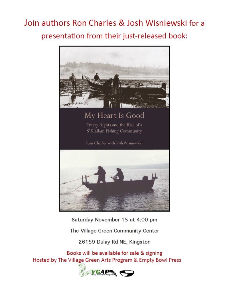 | Book Presentation & Signing: “My Heart Is Good: Treaty Rights and the Rise of a S’Klallam Fishing Community | Saturday, November 15th at 4 pm (after the Tribe Cultural Event) |